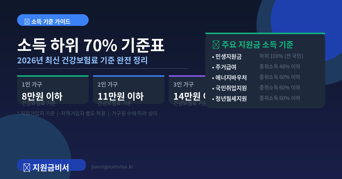 정부지원금을 신청하다 보면 "소득 하위 70%"라는 조건을 자주 만납니다. 그런데 정작 내가 여기에 해당하는지 확인하는 방법을 모르는 분이 많습니다. 이 글에서 2026년 최신 기준과 가장 빠른 확인 방법을 정리했습니다.